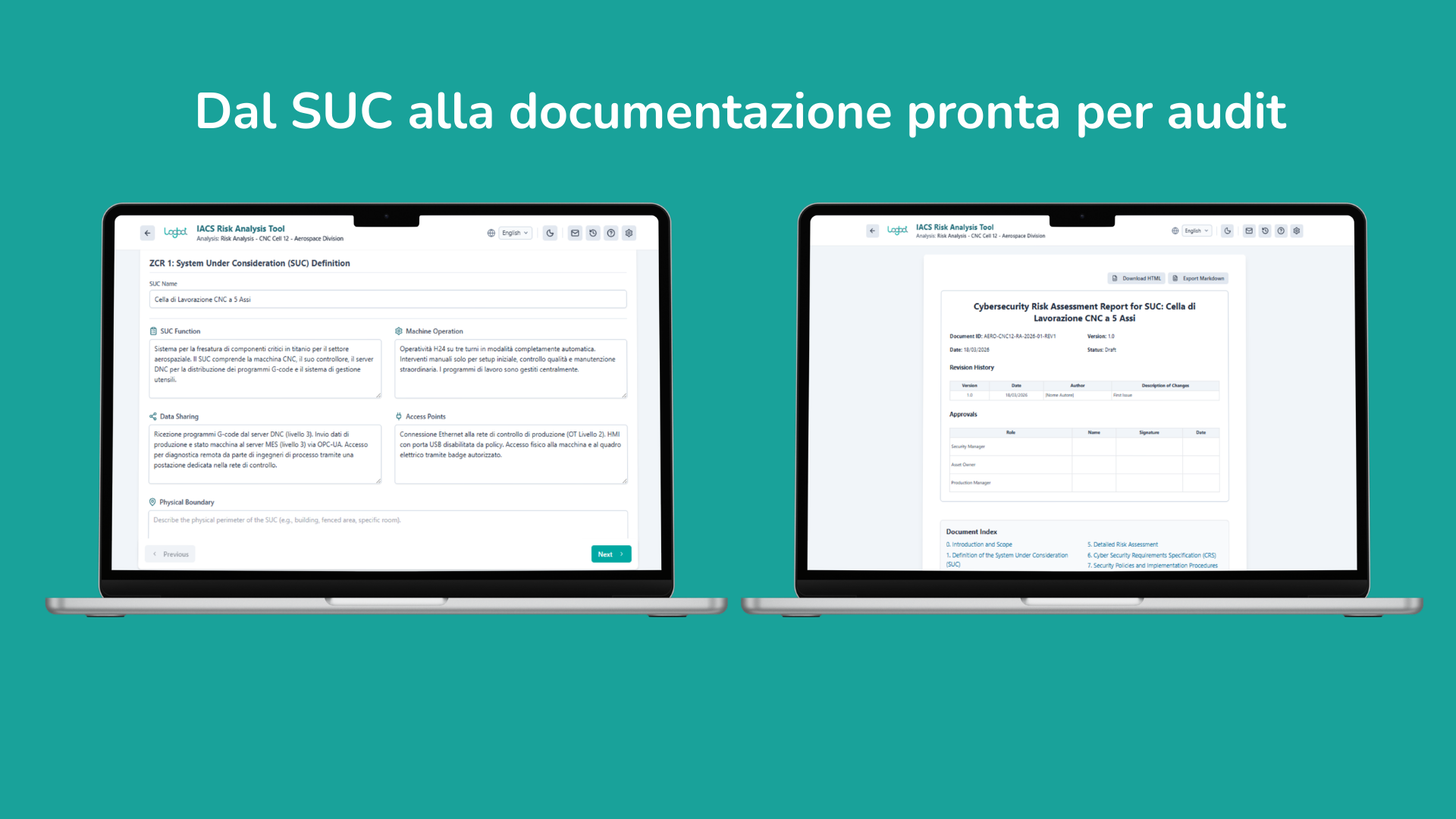 Logbot MACtool automatizza l’analisi dei rischi e la produzione della documentazione, rendendo la cybersecurity OT semplice, controllabile e verificabile in pochi click.